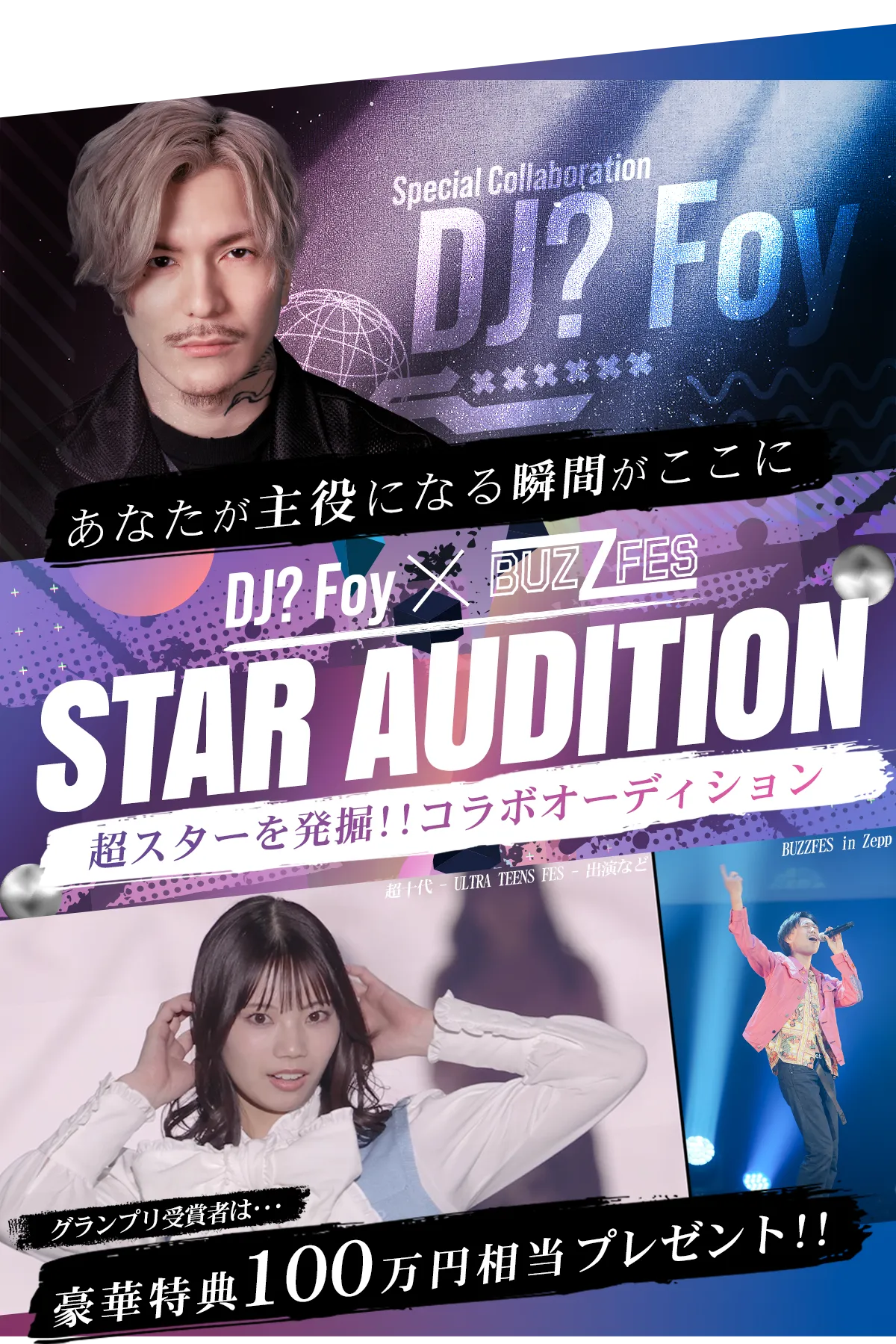 メニュー オーディションについて DJ? Foyアンバサダー就任 合格特典について 応募資格について オーディションの流れ よくあるご質問 注意事項について Q.経験や実績がなくても参加できますか? 🅰. はい、もちろん可能です! 「有名になりたい」「⼈前に⽴ちたい」という想いがあれば経験は問いません。 Q. 参加費用はかかりますか? 🅰. オーディション参加において費用は発生しませんので、お気軽にご応募ください。プログラムへの参加が決定した場合、一定の費用(マネジメント費用等)をご負担いただきます。 Q. 地方在住ですが、応募は可能ですか? 🅰. エリアを問わずご参加いただけます。イベント参加への交通費等は⾃⼰負担となりますのでご了承ください。 Q. グランプリを受賞できなかった場合、チャンスはありますか? 🅰. はい。 参加賞としてZeppのステージ出演や、 DJ? Foyさんによる特別セミ ナーへの参加チャンスをご⽤意しています。 挑戦することで必ず次につながる経験が得られます。 応募エントリ ーは、お⼀⼈様1回のみ可能。 交通費・宿泊費等はご⾃⾝での負担となります。 オーディション時は録音・撮影は禁止です 内容をSNSアップロードも禁⽌しております。 事務所への直接訪問は一切お断りしております 気になるご質問はLINEにて承ります。 お問い合わせはこちら 住所、電話番号、氏名、性別、年齢(以下「個人情報」といいます。)は、株式会社LEMが管理します。お客様の個人情報は、本キャンペーンの当選者への連絡の目的で利用し、それ以外の目的では使用致しません。また、お客様の個人情報をお客様の同意なしに業務委託先以外の第三者に開示・提供することはありません(法令等により開示を求められた場合を除きます。)。また、個人情報開示訂正等のお問い合わせは creatoracademy.lem@gmail.comまでお願い致します。 プライバシーポリシー | 重要事項に関する表記 ©LEM.inc All rights reserved.